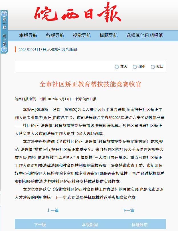 皖西日报:全市社区矫正教育帮扶技能竞赛收官