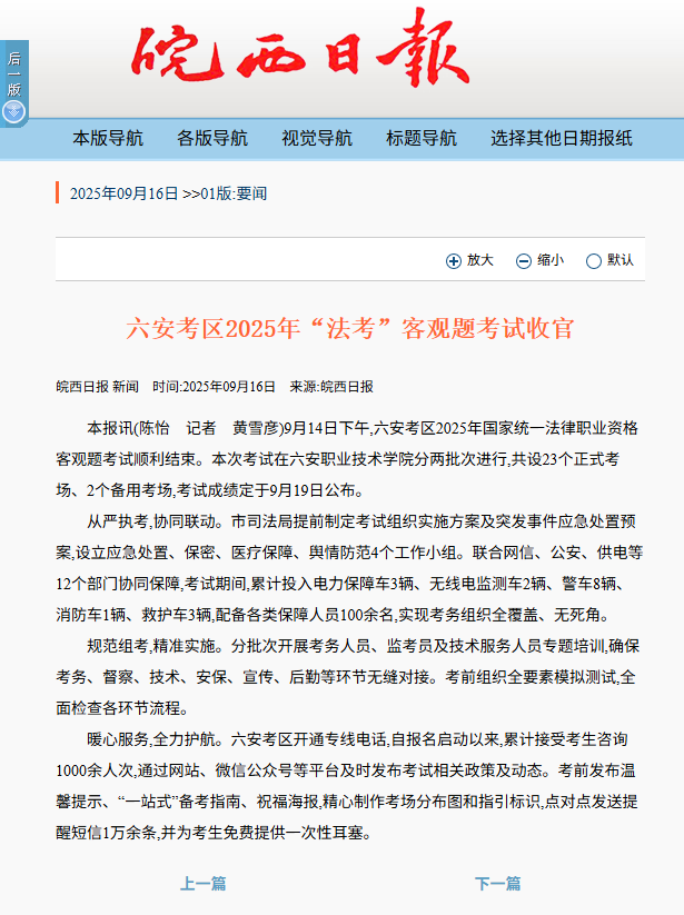 皖西日报:六安考区2025年“法考”客观题考试收官