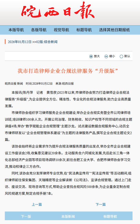 皖西日报:我市打造律师企业合规法律服务“升级版”