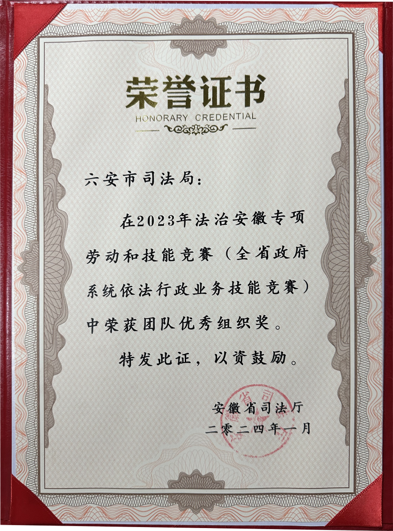 2023年法治安徽专项劳动和技能竞赛(全省政府系统依法行政业务技能竞赛)优秀组织奖