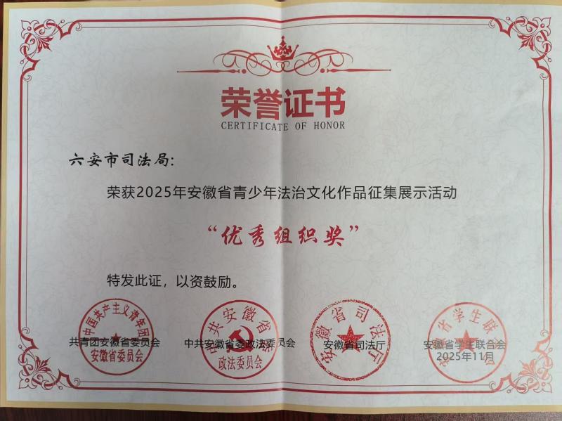 2025年安徽省青少年法治文化作品征集展示活动优秀组织奖