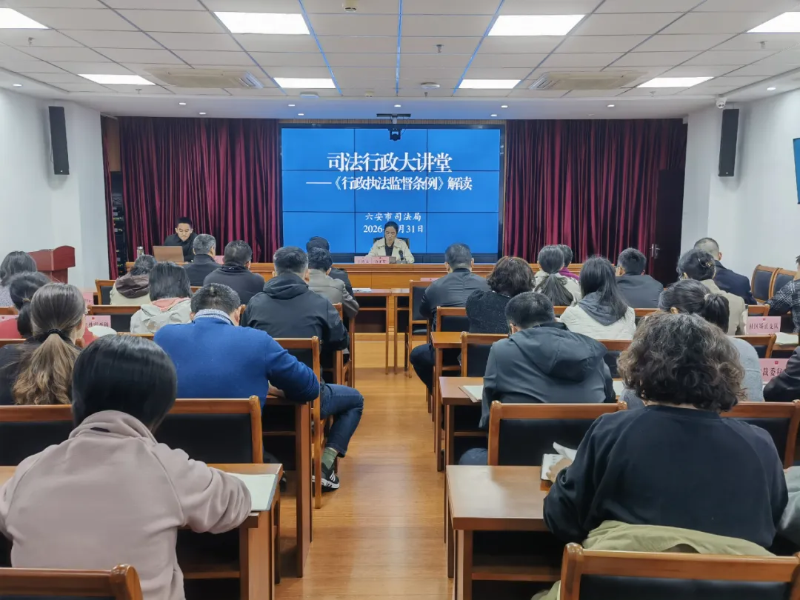 为深入学习贯彻《行政执法监督条例》,全面提升行政执法监督工作质效,3月31日,六安市司法局举办2026年首期司法行政大讲堂,邀请省司法厅行政执法协调监督处副处长俞星新以《〈行政执法监督条例〉解读》为题作专题辅导。