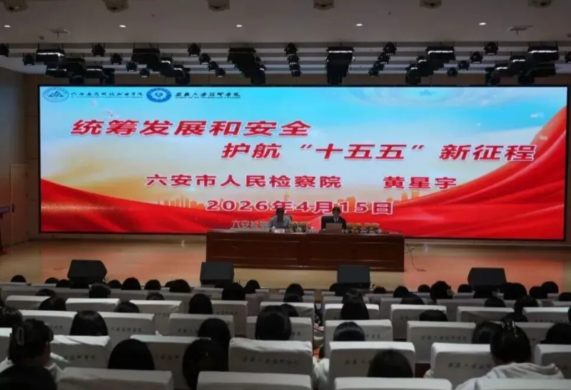 4月15日下午,在第十一个全民国家安全教育日当天,六安市人民检察院应邀赴六安应用科技职业学院,以“检校合作”为载体,紧扣“统筹发展和安全,护航‘十五五’新征程”主题,开展国家安全教育专题普法公开课,将总体国家安全观转化为可看、可听、可玩、可参与的青春实践。