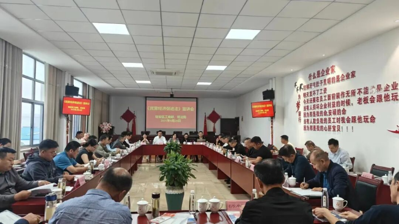 为深入学习宣传《中华人民共和国民营经济促进法》,开展好优化法治化营商环境专项普法活动,推动裕安区民营经济持续、健康、高质量发展,9月24日上午,裕安区司法局联合工商联举办民营经济促进法宣讲会,为辖区民营企业家送去法律服务。